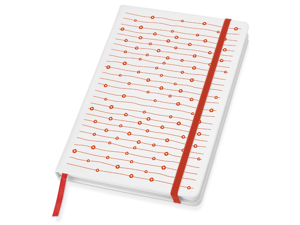 Белый линованный блокнот формата А5 с закладкой и эластичной застежкой идеально подойдет для записи секретов. Еще одна тайна спрятана в его обложке – под ее верхним слоем белого цвета скрыт контрастный фон, который становится виден при тиснении.