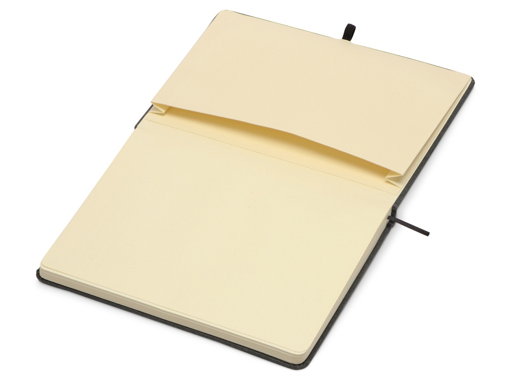 Классический блокнот в лаконичном дизайне. Обложка cо скругленными углами выполнена из картона и переработанной кожи. Внутренний блок из кремовой бумаги 70гр. Ляссе, резинка и карман для бумаг или карточек - для более удобного пользования. С помощью эластичной петли можно прикрепить любимую ручку или карандаш.