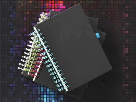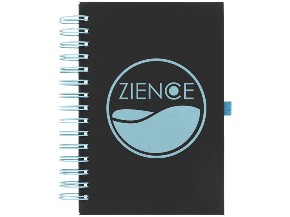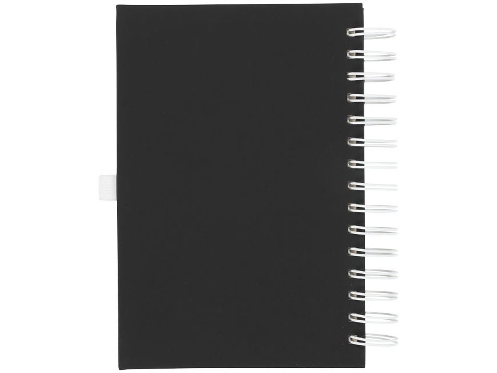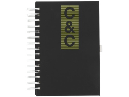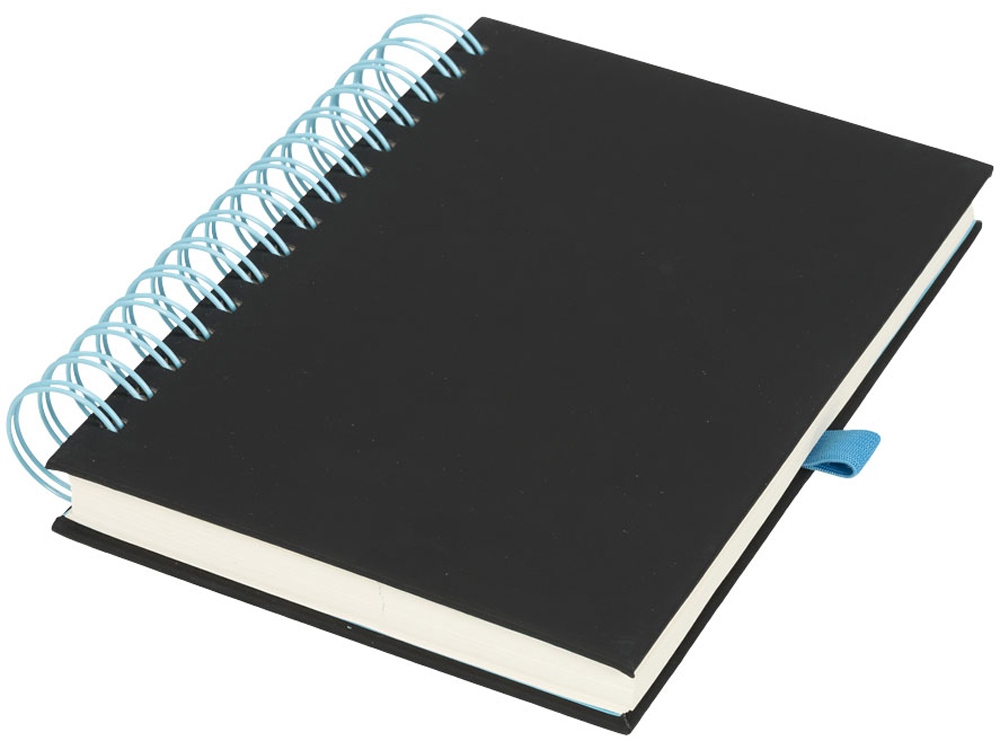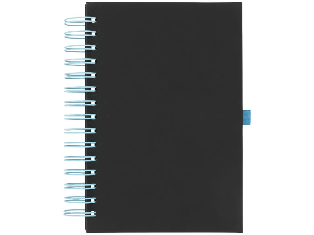 Блокнот Wiro. Новинка в нашей популярной коллекции блокнотов. В этом универсальном новом блокноте есть гладкая черная обложка из ПУ, цветная спираль и застежка-держатель для ручки. Содержит 160 листов линованной бумаги (70 г/м²) кремового цвета. Обложка из ПУ с металлической спиралью.