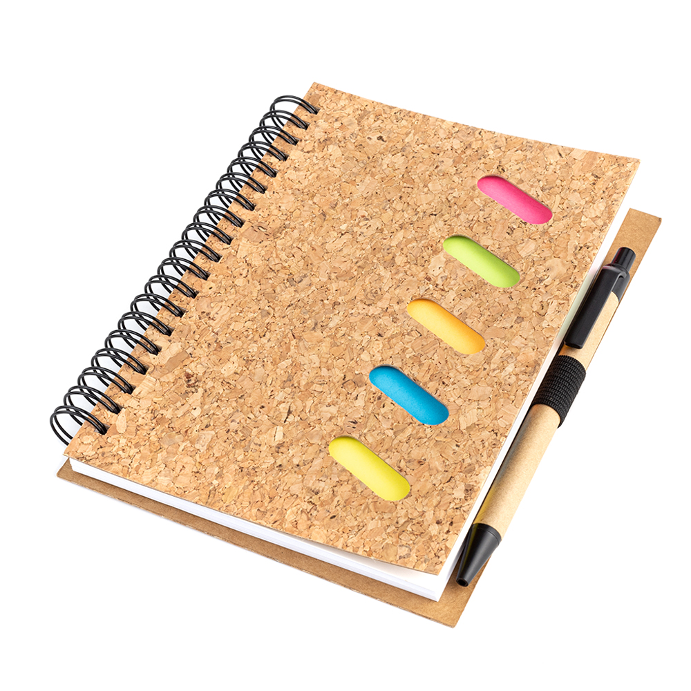 Блокнот на пружине и с пробковой обложкой.