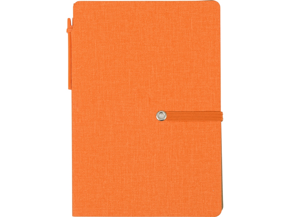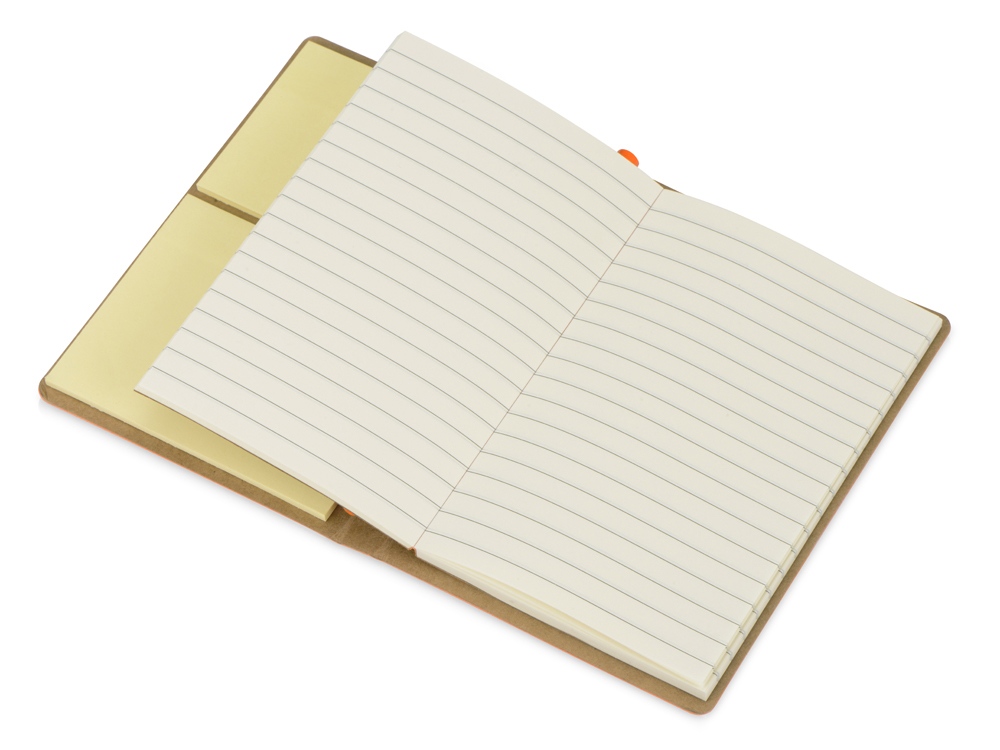 Компактный набор включает в себя разноцветные стикеры разных размеров, блокнот с линованной бумагой и ручку c корпусом из переработанного картона. Обложка выполнена из фактурной искусственной кожи, которая, при тиснении, меняет цвет на более глубокий.