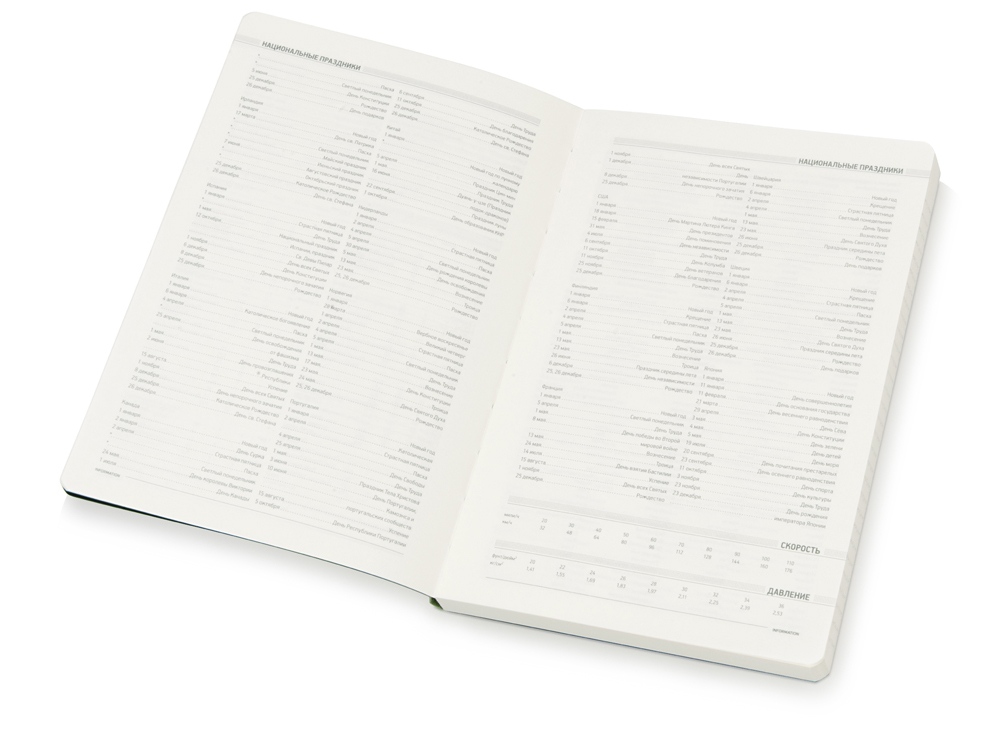 В ежедневнике Megapolis Flex есть полезная справочная информация и телефонная книга, а также страницы для записи идей, мыслей и составления рабочих планов. Для изготовления страниц используется качественный бежевый офсет повышенной плотности (70 г/кв м). Блок не привязан к конкретным датам – они указываются в выделенном поле вверху страницы. Тонированная бумага не дает глазам утомиться даже при длительной работе.