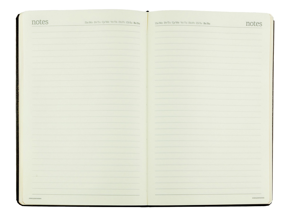 Ежедневник выпускается в универсальном формате А5. Размер обложки – 144*215 мм. В недатированном блоке для записей 320 страниц из тонированной бумаги бежевого цвета. Бумага плотностью 70 грамм.