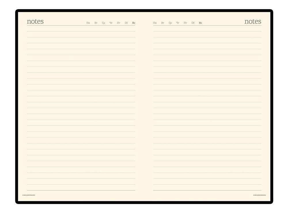 Ежедневник выпускается в универсальном формате А5. Размер обложки – 144*215 мм. В недатированном блоке для записей 320 страниц из тонированной бумаги бежевого цвета. Бумага плотностью 70 грамм.