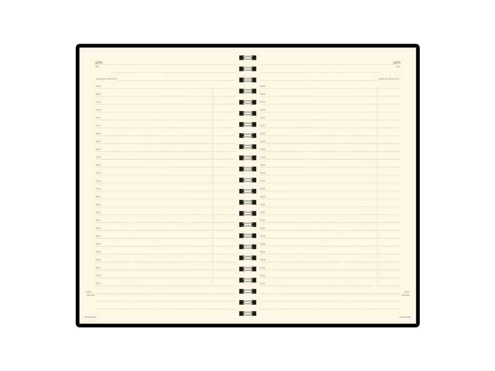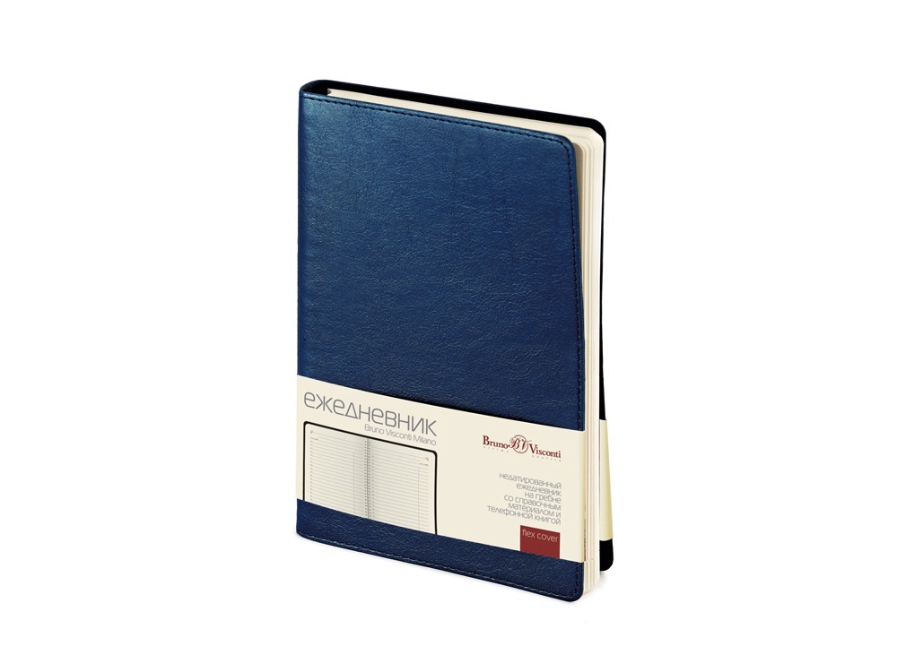 Ежедневник Milano от бренда Bruno Visconti - это сочетание элегантности и практичности. Закругленная обложка из классического переплетного материала - хорошая альтернатива натуральной коже. Форма обложки подчеркнута аккуратной строчкой по краю. Внутренний блок формата А5 на современном креплении – полускрытом гребне – содержит 272 страниц. Для них подобрана первосортная бежевая бумага повышенной плотности (70 г/кв м). Помимо рабочих страниц в структуру блока включены телефонная книга и справочный раздел. На страницах для планирования есть удобная почасовая разбивка.