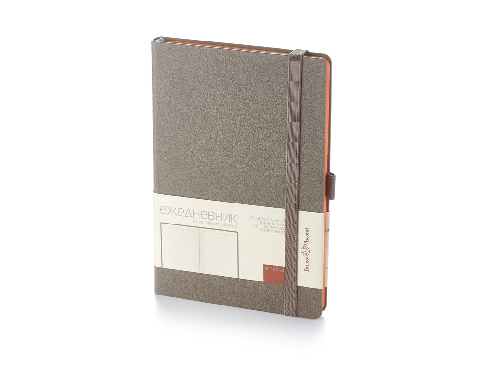 Недатированный ежедневник Monaco от бренда Bruno Visconti - это качественный корпоративный подарок по выгодной цене, произведенный специально под персонализацию. Представлен в универсальном формате А5 и состоит из 272 страниц. Материал обложки выполнен из рельефного козжзама, на котором очень эффектно смотрится тиснение. Четкие, выверенные линии акцентированы с помощью вертикальной резинки в тон обложке. Обложка с фиксирующей резинкой надежно удерживается в закрытом положении. Предусмотрено отдельное место для письменной принадлежности (эластичная петля).