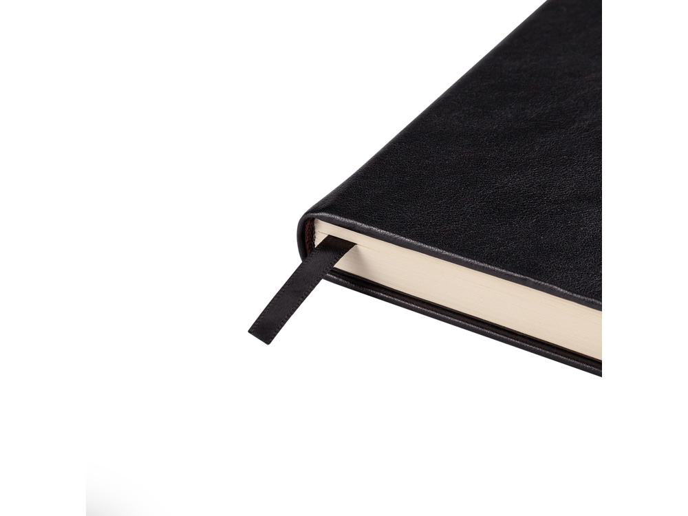 Твердую обложку из высококачественной искусственной кожи дополняет металлический хлястик на магните. Ляссе в цвет обложки позволяет быстро найти нужную страницу. Блок в 272 страницы произведен из бежевой бумаги плотностью 70 г/кв.м и имеет раздел справочной информации на 19 страницах. Для удобства навигации все углы блока перфорированы, имеют скруглённую форму.