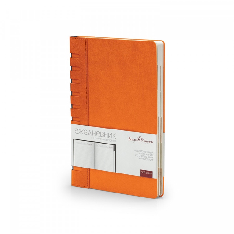 Оригинальная модель ежедневника с необычным накладным корешком с вырубкой и контрастной подложкой. Обложка готова к персонализации и выполнена из гибкого материала.