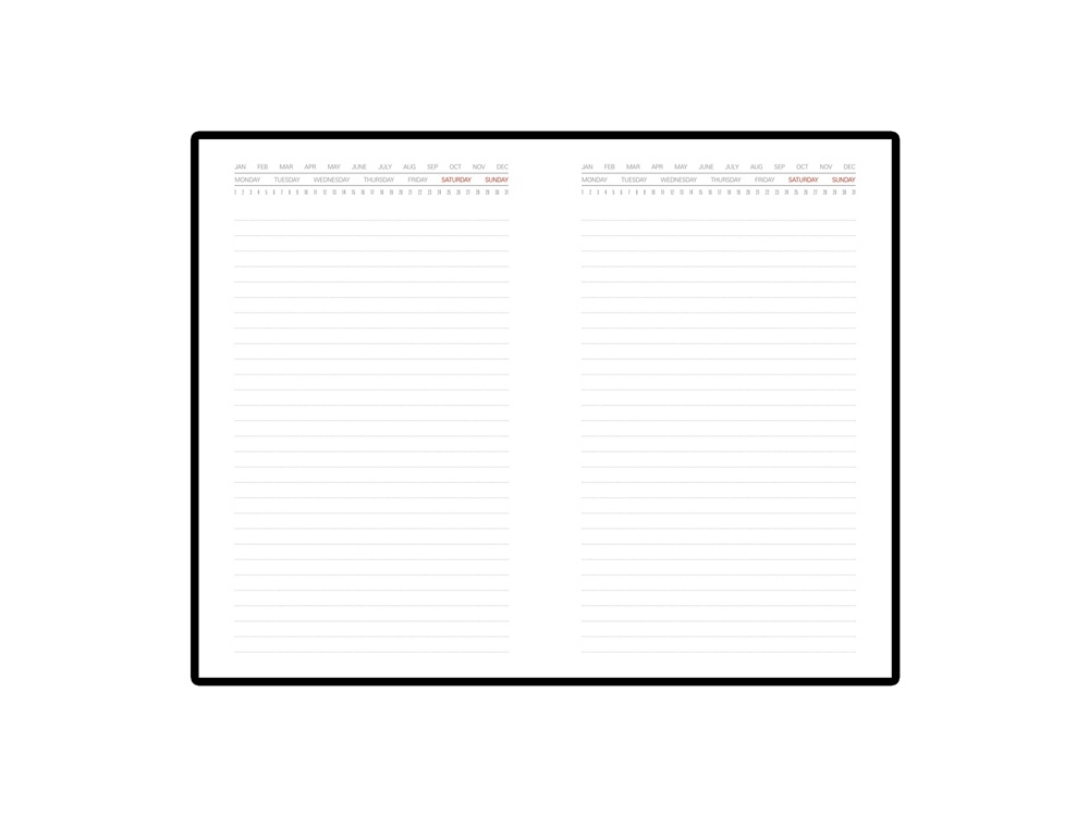 Для блока в линейку используется великолепная бежевая бумага плотностью 70 г/м. Индексы на 12 месяцев позволяют эффективно планировать даже долгосрочные и отложенные дела.