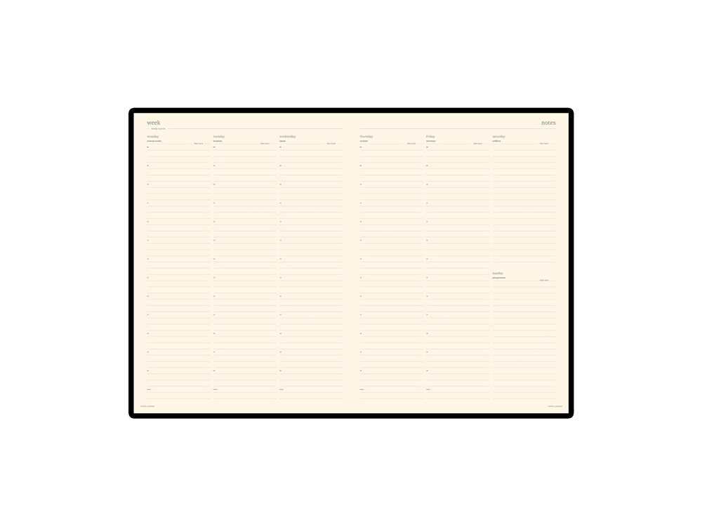 Недатированный еженедельник формата А4 удобен для настольного использования.