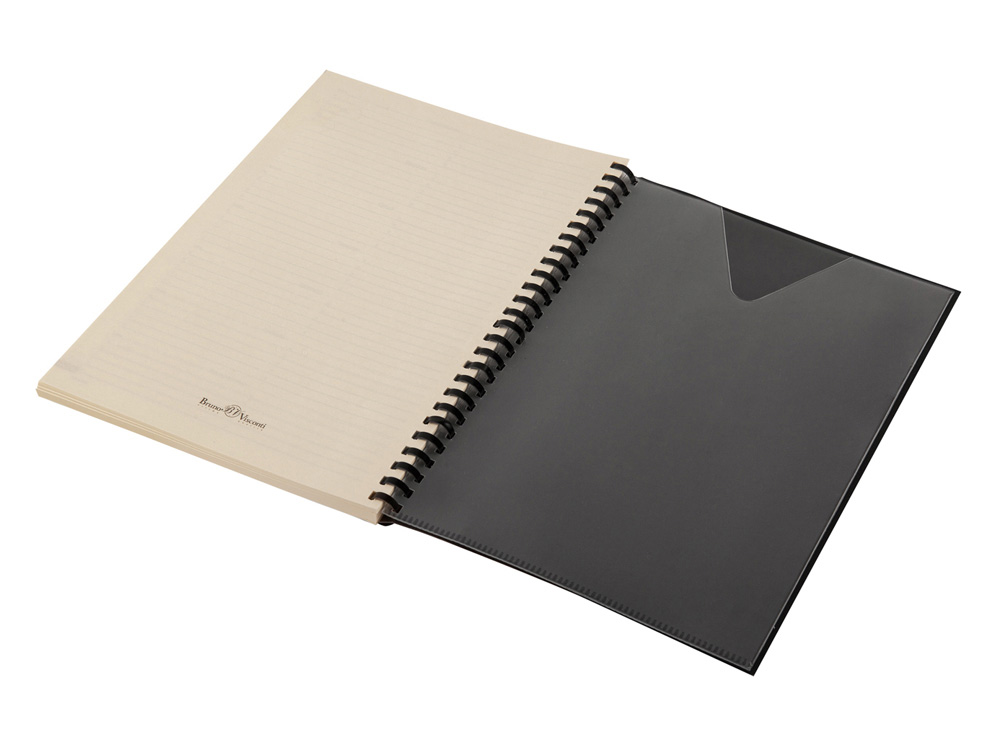Блок является сменным и вставляется внутрь обложки. С внутренней стороны обложка имеет вырубные отделения для визиток и кредитных карт, а также петлю для ручки на резинке. Для хранения чеков, записок и бумаг внутри расположен прозрачный пластиковый конверт.
