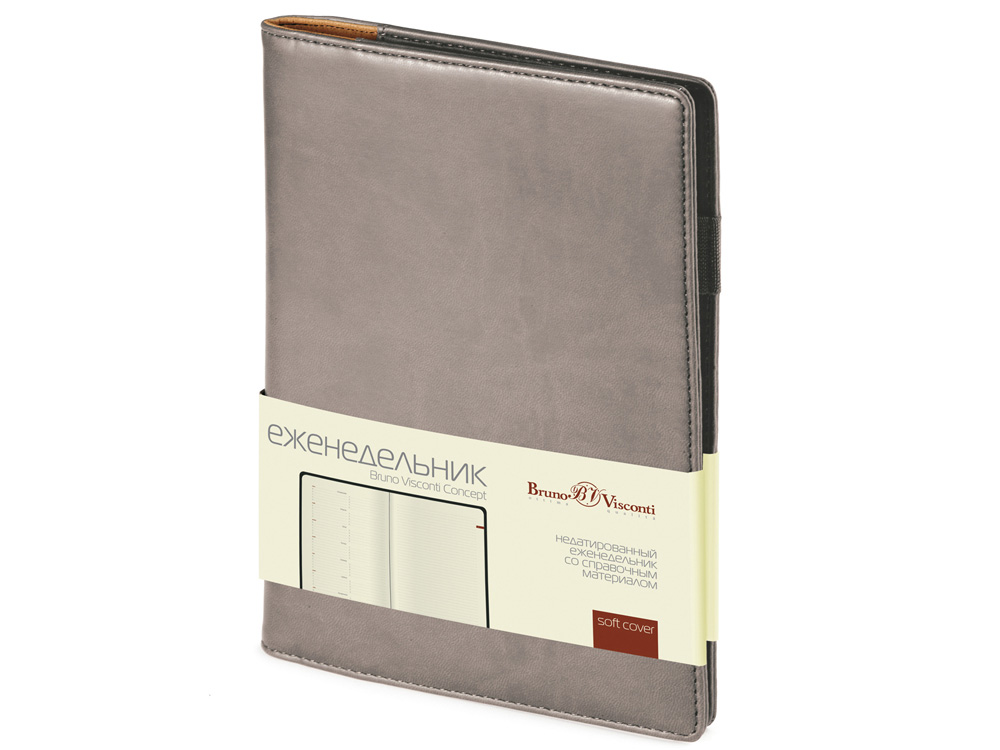 Деловые еженедельники Concept - это воплощение современного дизайна, в котором сочетаются практичные детали. Благодаря удобному формату slim-pocket еженедельник легко помещается в сумку. Еженедельник Concept в классической серой обложке формата А5. Практичный, привлекательный и приятный на ощупь материал обложки на протяжении всего срока службы сохраняет презентабельный вид. Уголки обложки имеют закругленную форму, по всему периметру сделана прострочка нитками в тон.