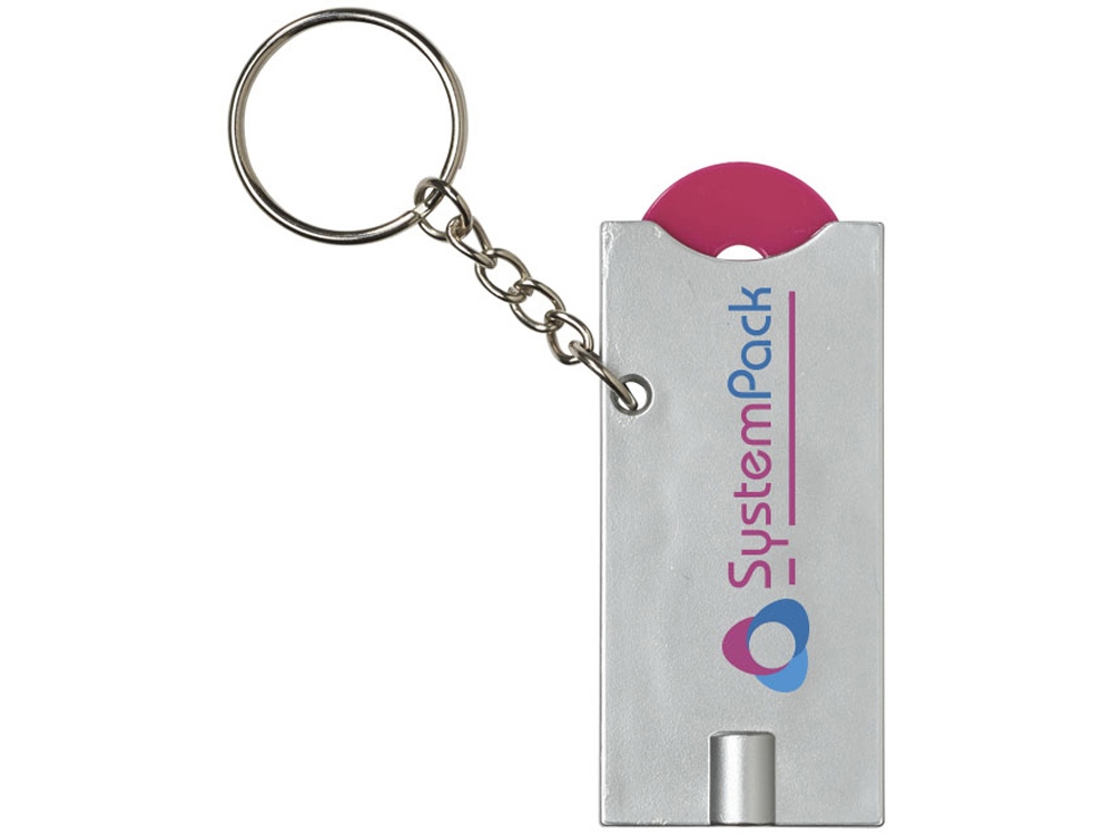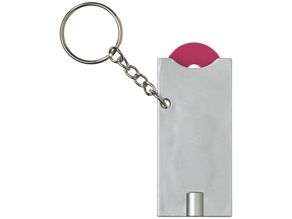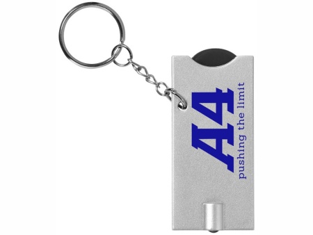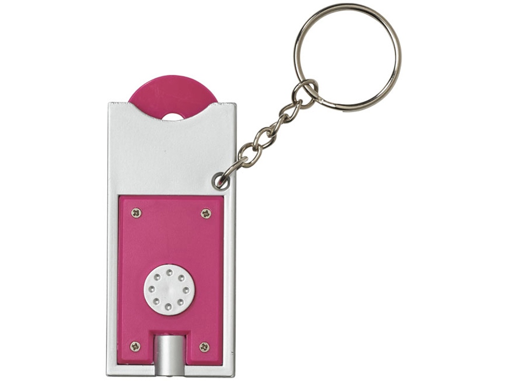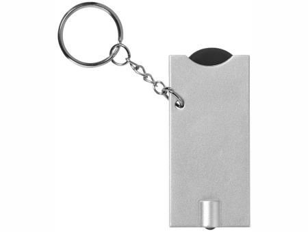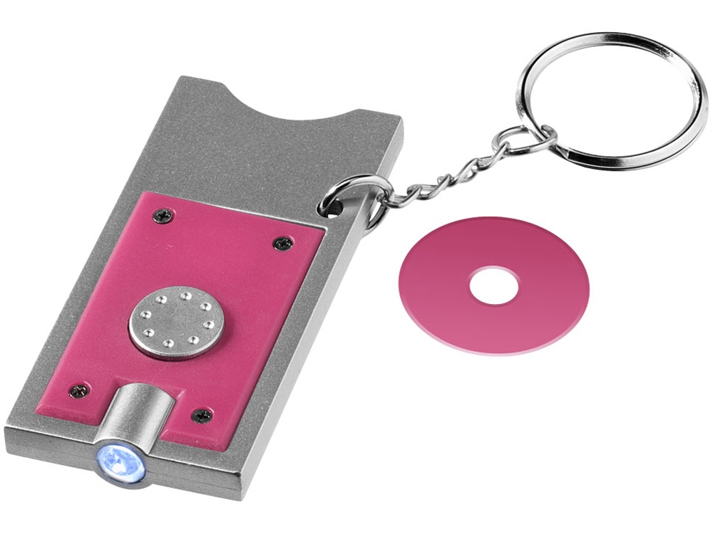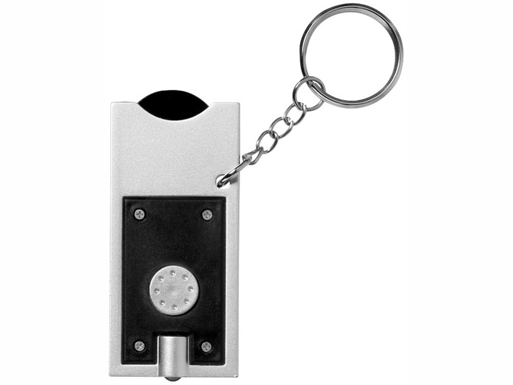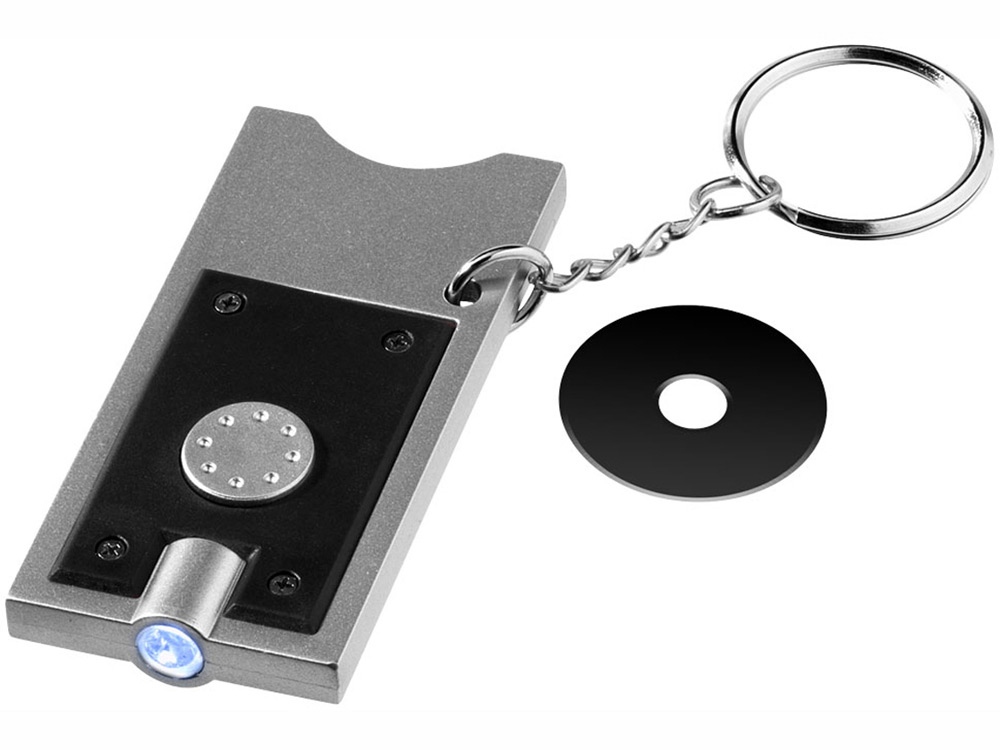 Брелок-держатель для монет Allegro с фонариком для ключей. Пластиковый держатель для монет достоинством 1 евро размером Ø 6 мм с одним белым светодиодом для ключей. Металлическое кольцо для ключей Ø 25 мм. Батарейки включены в комплект и вставлены. АБС-пластик.