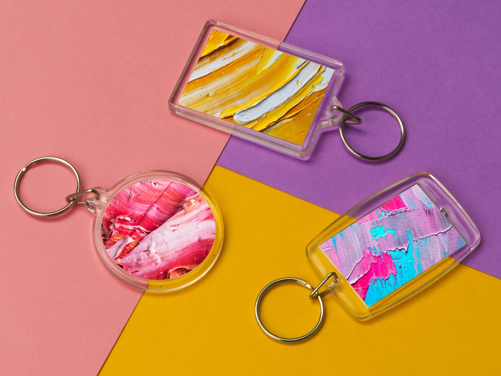Недорогой брелок с возможностью вставки фотографии или рекламного постера разойдется среди клиентов большим тиражом, принося вам прибыль. Отличный вариант универсального сувенира.