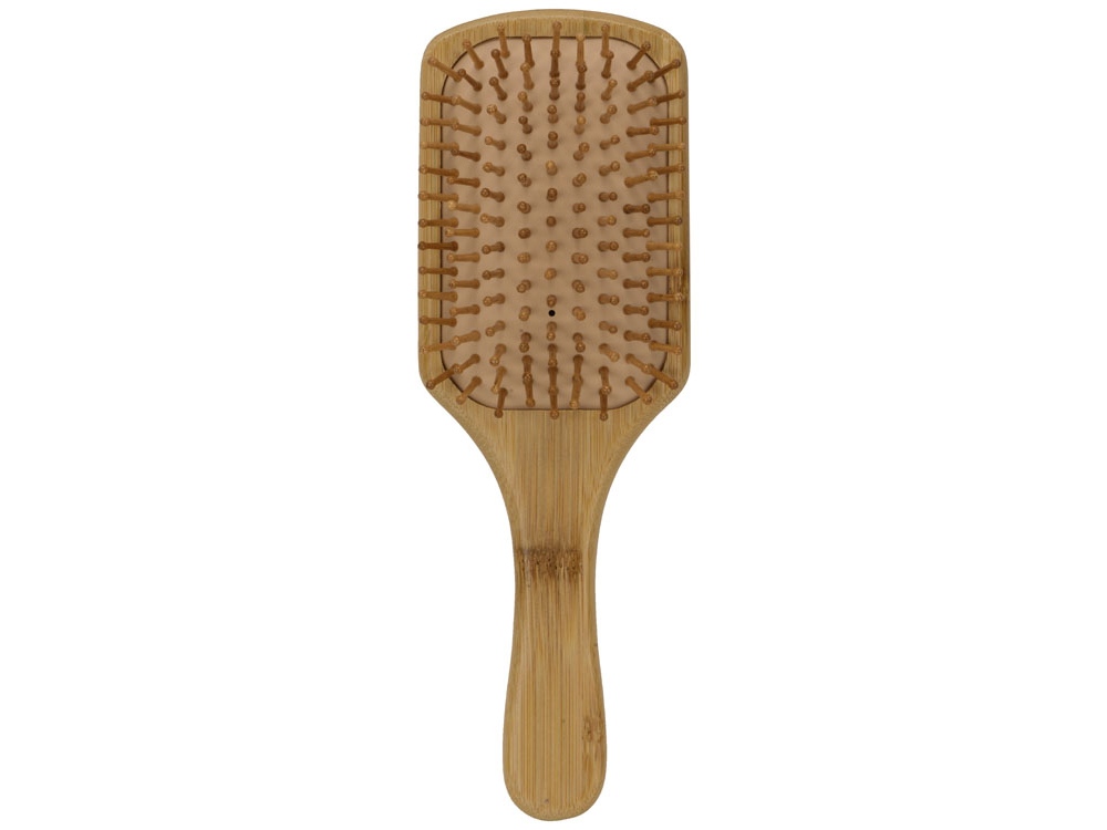 Массажная щетка для волос Bambola из бамбука бережно расчесывает сухие и влажные волосы, придает им блеск, объём и гладкость.