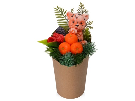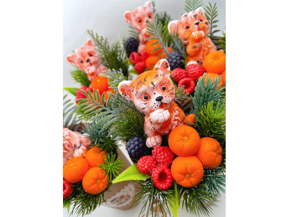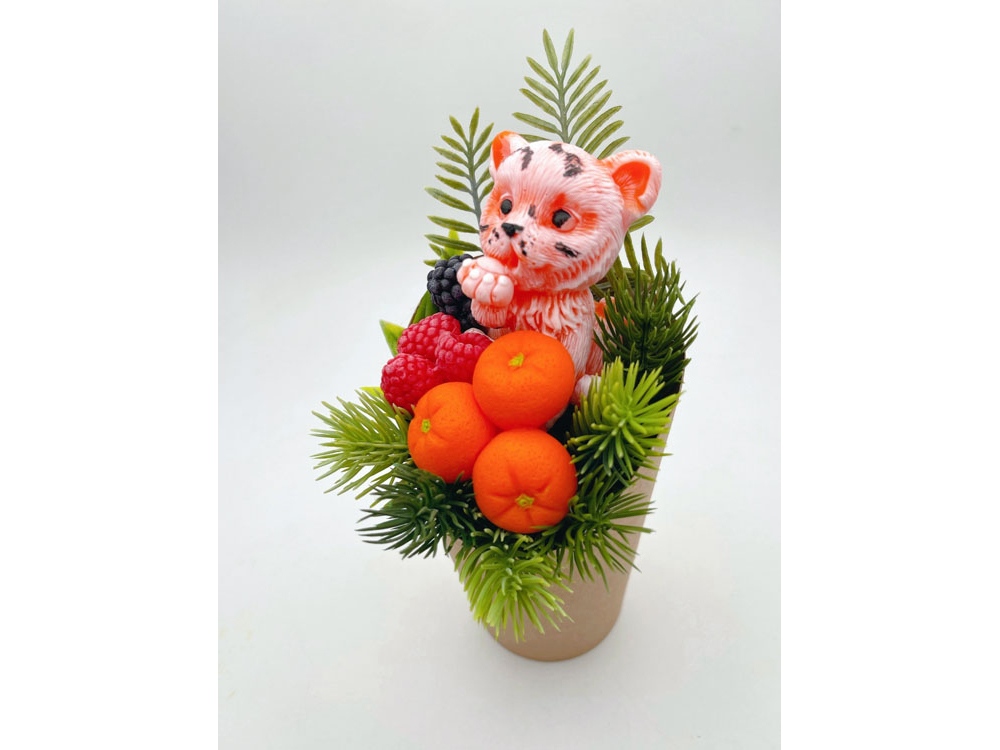 Мыло ручной работы в виде милого тигренка в джунглях из папоротника, еловых веток и ягод. Отличный и запоминающийся подарок на Новый год.