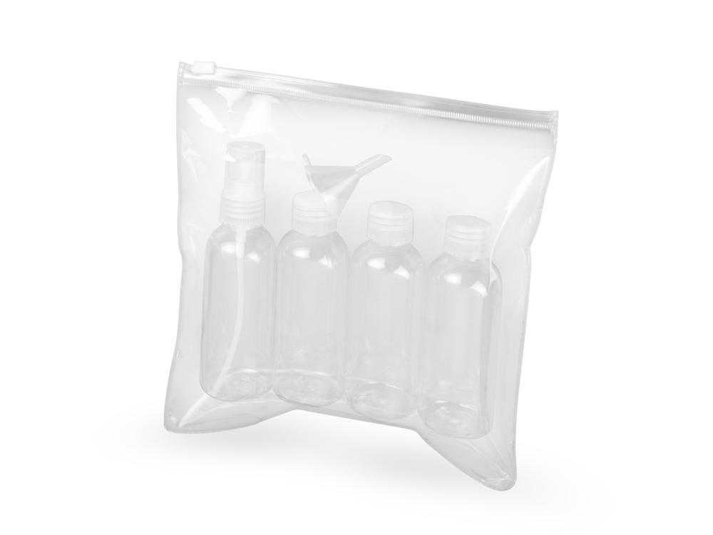 Собирая чемодан, мы всегда стремимся уменьшить вес и объем дорожной сумки. Дорожный набор Tokyo в этом деле первый помощник. В набор входят три бутылки, объемом в 80 мл., 1 бутылка-спрей и мини-воронка. В эти бутылочки легко перелить необходимые косметические средства, чтобы не тащить с собой целый флакон. Упакован в прозрачную пластиковую косметичку на застежке Zip-lock.