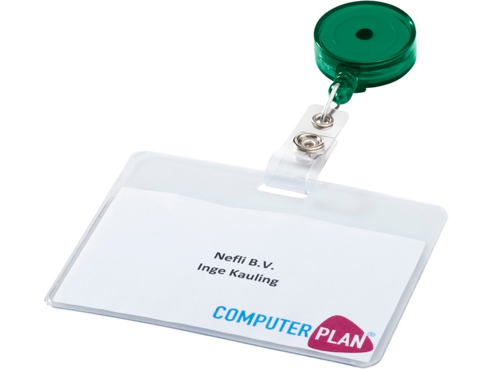 Отлично подходит для торговых выставок и бейджей для сотрудников. Можно также использовать в качестве брелока для ключей.