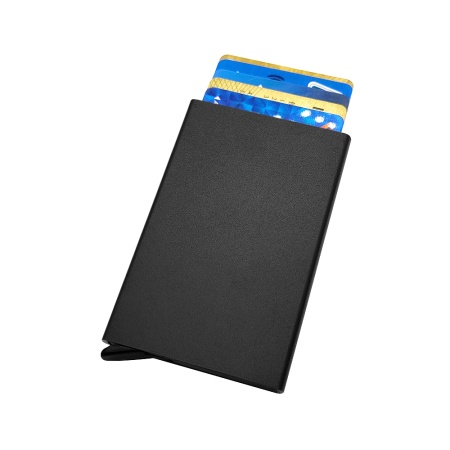 Современный практичный способ хранить и использовать банковские карты – металлический держатель Visir. Кнопка снизу позволяет легко извлекать карты из бокса с защитным покрытием против копирования данных.
