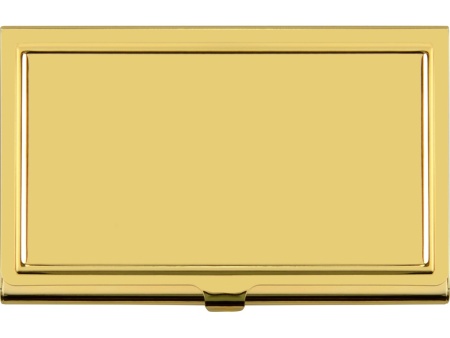 Стильная и элегантная металлическая визитница золотистого цвета подойдет в качестве презента как для мужчин, так и для женщин. На поверхности визитницы можно выгравировать поздравительную надпись или логотип организации.