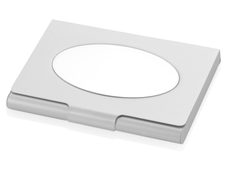 Отличный подарок или промо-сувенир по любому поводу. Визитница Dafna выполнена из серебристого металла. На крышке расположена овальная вставка, куда можно нанести глянцевое изображение или сделать гравировку.