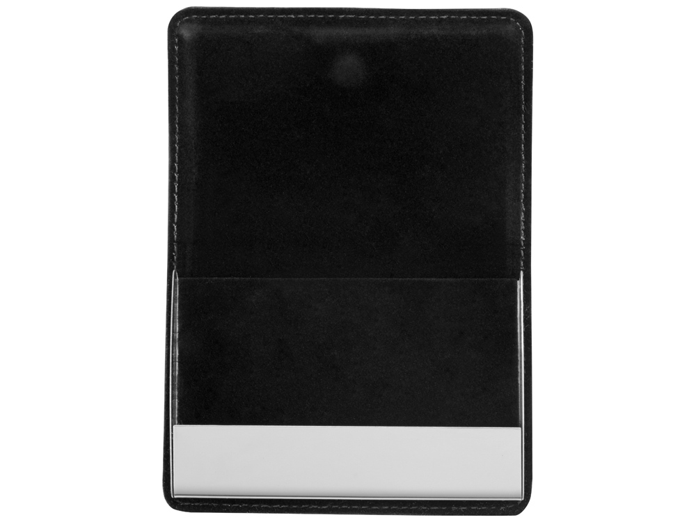 Лаконичный дизайн визитницы, выполненной из кожзама, нисколько не упрощает ее внешний вид, а, наоборот, дает хорошую возможность нанести фирменную символику или дарственную надпись на большой площади. На металлическую деталь визитницы также можно нанести изображение методом гравировки.
