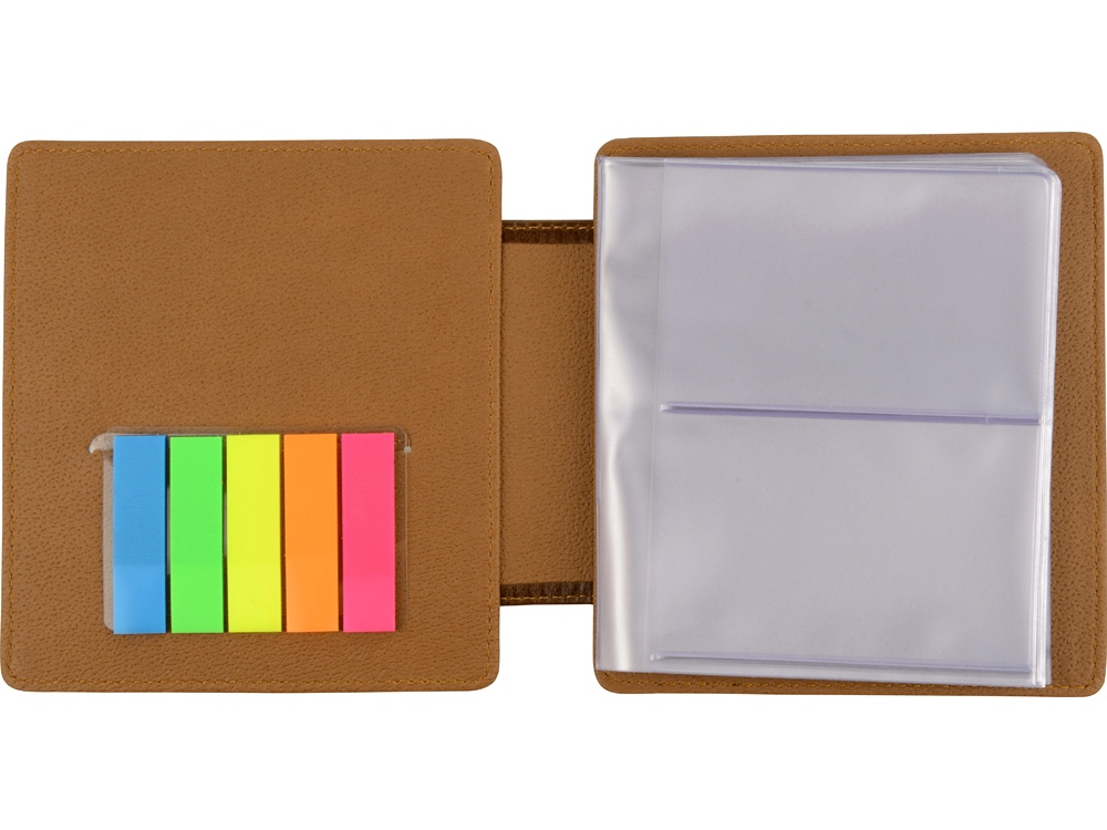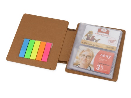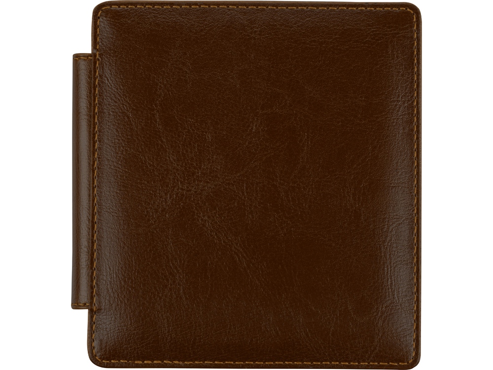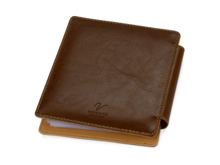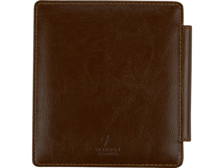 Визитница на магните выполнена из металла с искусственной кожей снаружи и черном бархатом внутри.