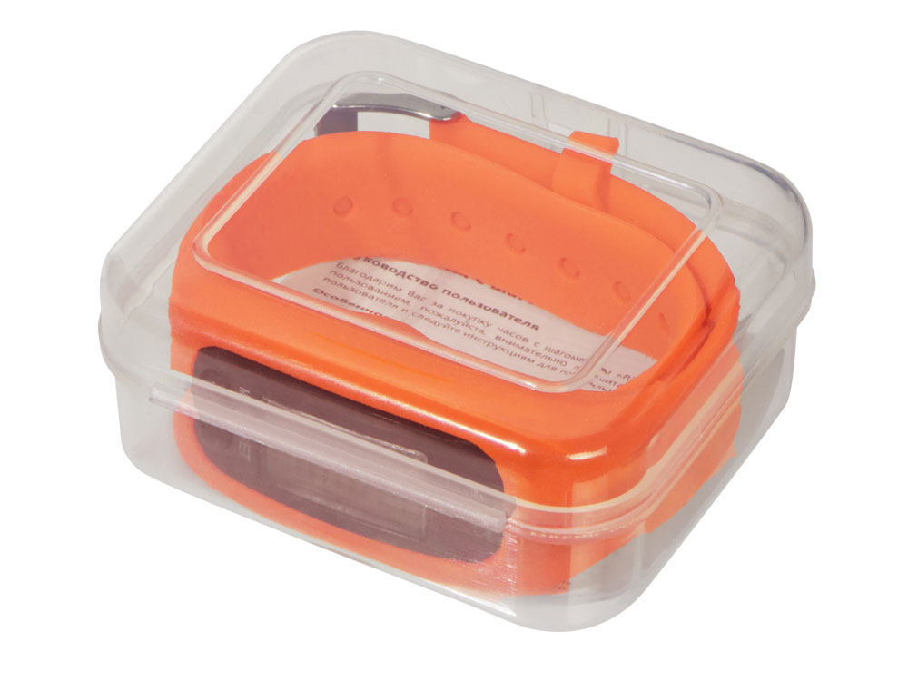 Наручные часы с возможностью отображения времени, калорий, шагов и дистанции. Есть переключение между метрической и британской системами измерений. На силиконовом ремешке можно сделать гравировку. Часы упакованы в пластиковую коробку, которую можно использовать для нанесения. Батарейка в комплекте.