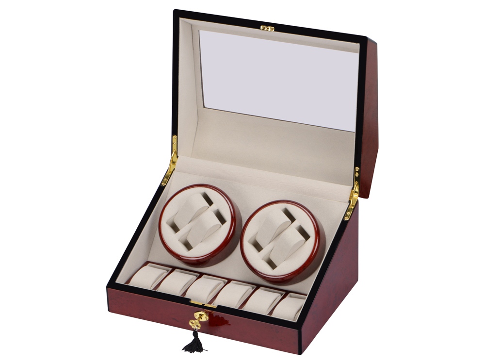 Прекрасный подарок для успешных людей и любителей часов. Шкатулка из высококачественного красного дерева позволит аккуратно хранить аксессуары. Шкатулку можно запирать на ключ. Лаконичный дизайн шкатулки делает ее универсальным подарком для мужчин и женщин.