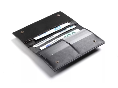 В меру строгий и универсальный, этот кошелек будет верным решением для людей, привыкших носить всё своё при себе.