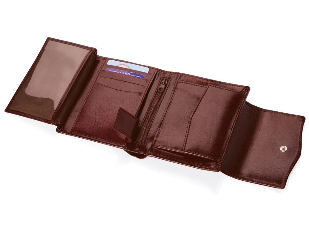 Портмоне выполнено из качественной, приятной на ощупь натуральной кожи. Внутри портмоне предусмотрены карманы для визитных и банковских карточек, а также отделение под мелочь.