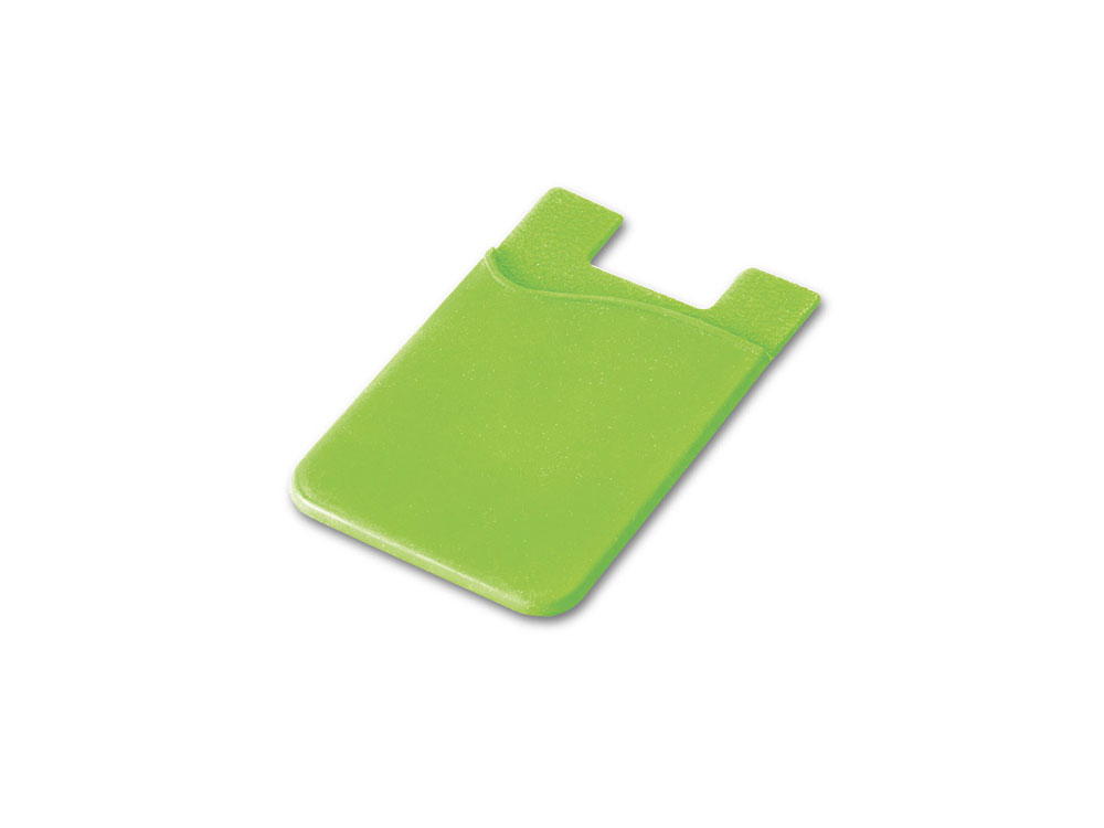 SHELLEY. Визитница для смартфона, Светло-зеленый. Футляр для кредитных карт из силикона, с липкой лентой на обратной стороне для крепления к телефону. Вид нанесения, рекомендуемый поставщиком: тампопечать, трафаретная печать