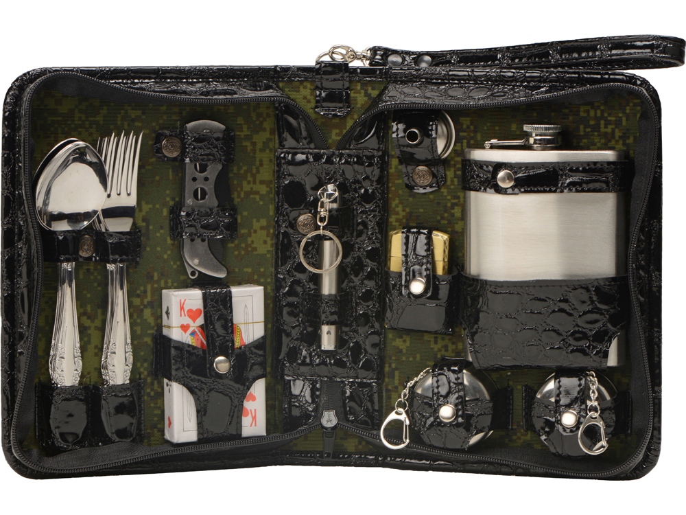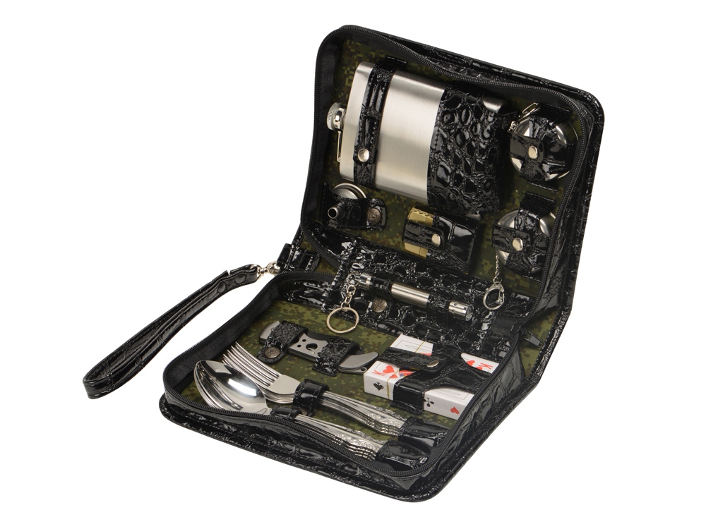 Оригинальный дорожный набор на 2 персоны в барсетке с удобным ремешком для переноски.