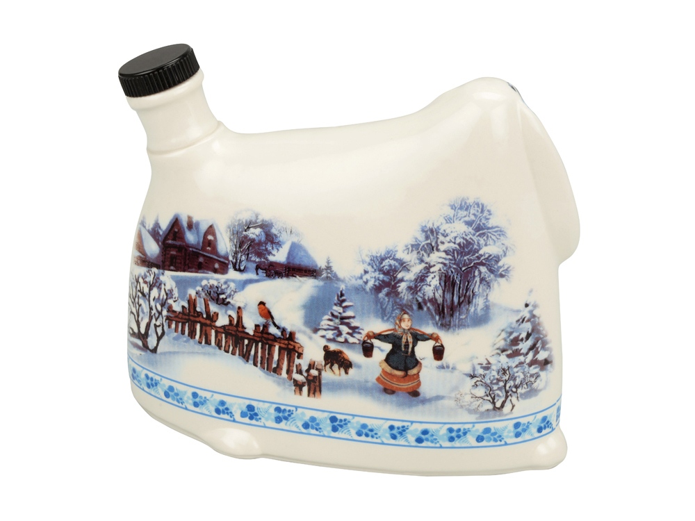 Вам нужен настоящий подарок в русском стиле? Нестандартный и очень душевный подарок штоф в виде собаки, с изображением традиционной русской забавы – катание на тройке. Роспись штофа выполнена в духе традиционного народного промысла. Штоф изготовлен из высококачественного фарфора. Превосходное мастерство росписи обеспечит долгое использование данного штофа. Объем штофа 500 мл. Упаковка – подарочная коробка из дизайнерской бумаги синего цвета с металлизированными наклейками.
