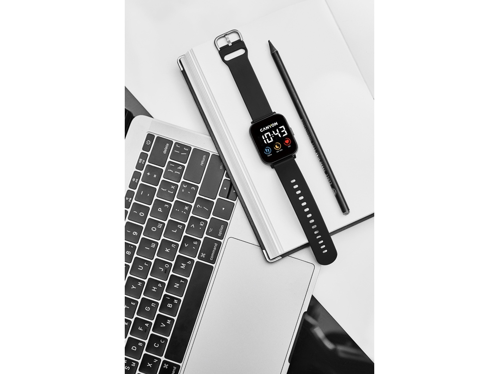 Вам больше не нужен смартфон для прослушивания любимых треков! Эти смарт-часы имеют встроенный плеер с памятью 512 мегабайт. А батарея рассчитана на 6 часов беспрерывного прослушивания музыки. Встроенный плеер поддерживает множество аудио форматов и отображен на циферблате. Часы подключаются к Bluetooth-наушникам, либо внешнему Bluetooth-динамику. Благодаря полной водонепроницаемости они пригодны для плавания. Соединившись со смартфоном, этот смарт-гаджет копирует в приложение Canyon Life статистику шагов и отображает все необходимые уведомления из соцсетей и мессенджеров.