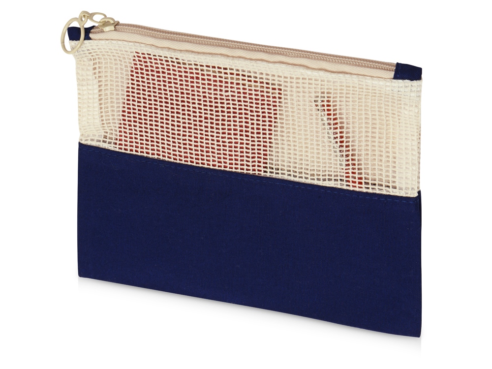 Вместительная хлопковая косметичка на молнии с сетчатой вставкой удобна для хранения личных вещей, косметики и гигиенический принадлежностей дома или в путешествии.