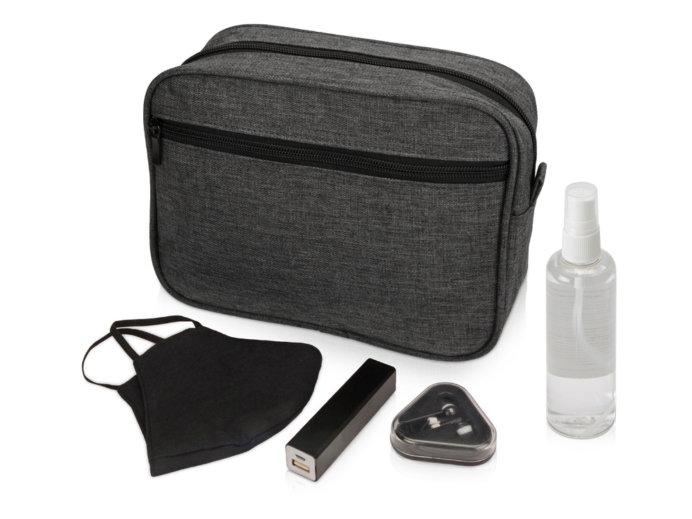 Все самое необходимое в современном мире и даже больше: набор со средствами индивидуальной защиты, наушниками и портативным зарядным устройством в стильном вместительном несессере выручит в любой ситуации.
