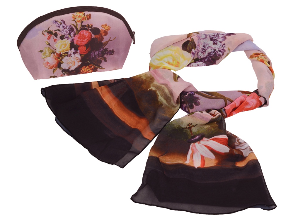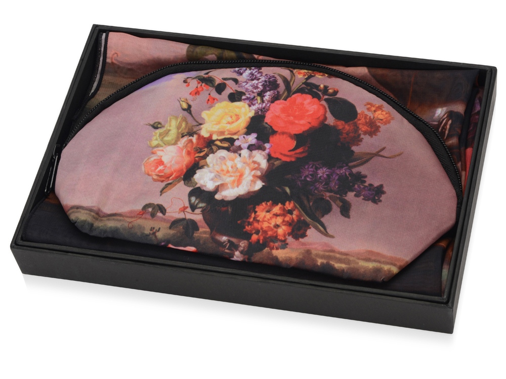 Изысканный подарочный набор для стильной женщины. Косметичка и шарф с цветочным принтом, выполненные в едином стиле, станут отличным дополнением к образу. Настоящий вкус проявляется в деталях.