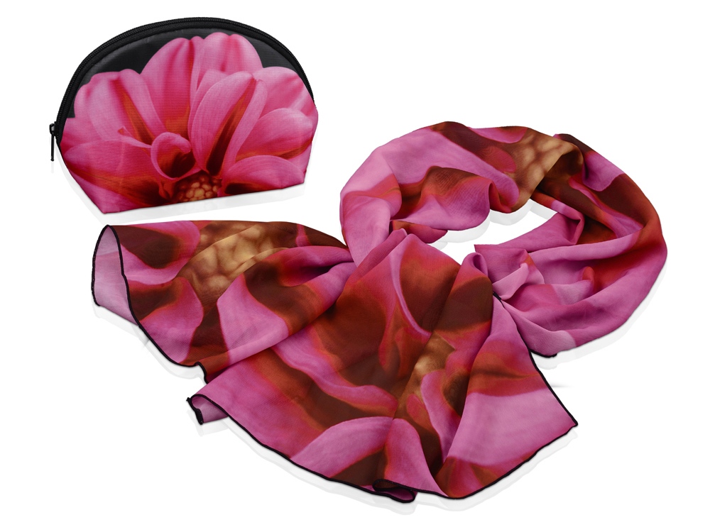Изысканный подарочный набор для стильной женщины. Косметичка и шарф с цветочным принтом, выполненные в едином стиле, станут отличным дополнением к образу. Настоящий вкус проявляется в деталях.