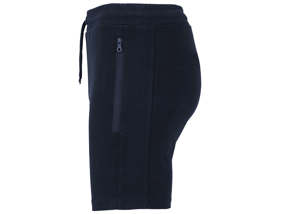 Шорты с эластичным поясом со шнурком и металлическими люверсами. Два боковых карманы на молнии с бегунком в тон. Лампасы по бокам в тон. Декоративный гульфик. Карман сзади с застежкой на кнопку.