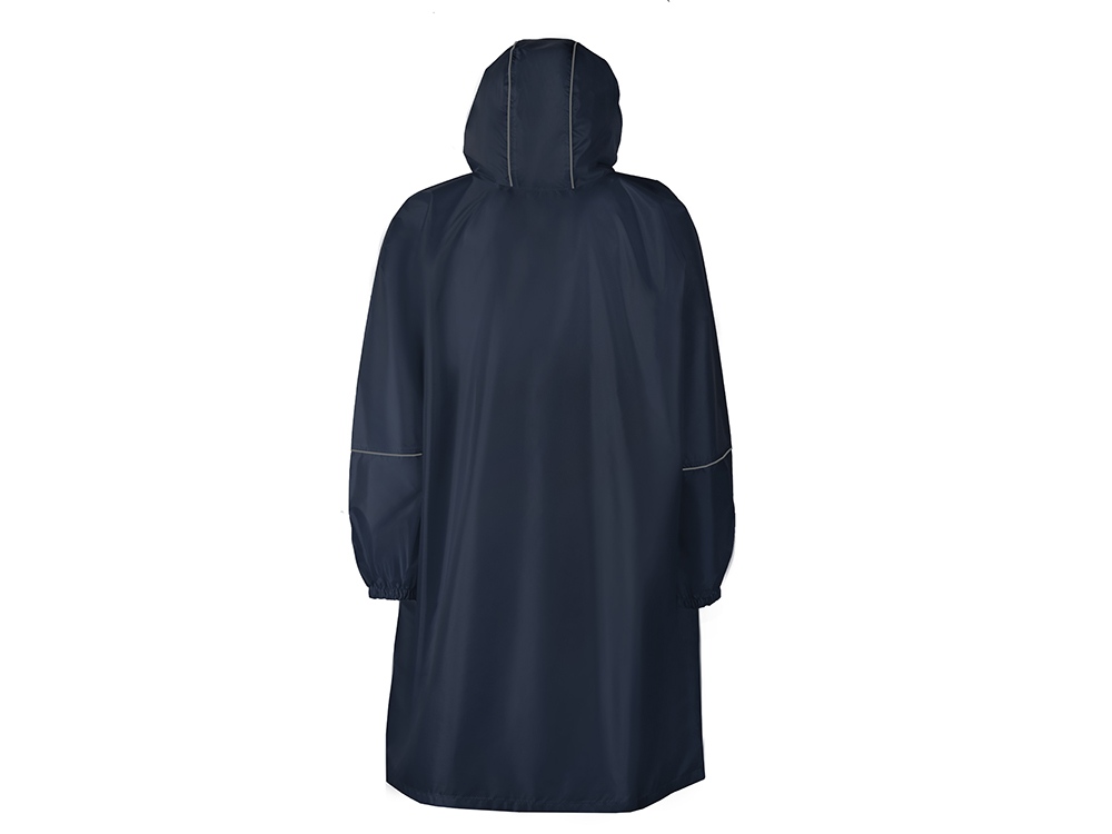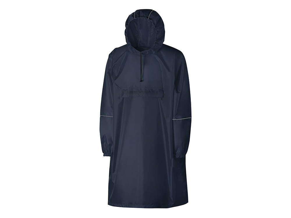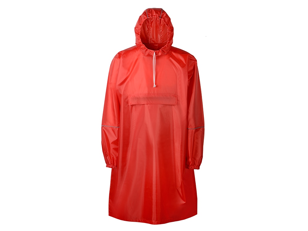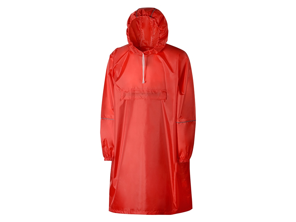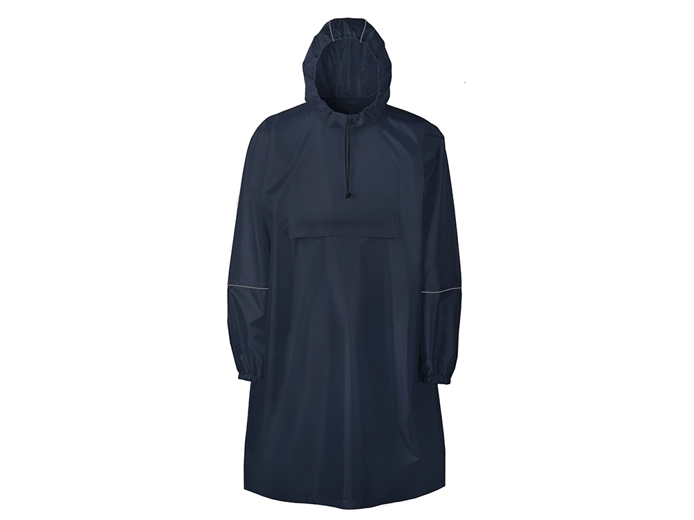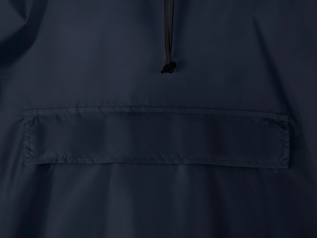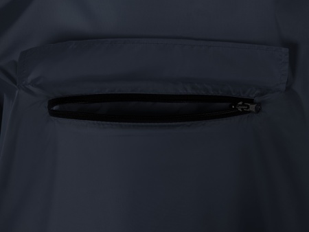 Дождевик - пончо прямого силуэта. Нагрудный карман плаща закрывается на молнию, которая дополнительно защищена клапаном, а еще в него можно полностью убрать дождевик. На дне кармана — ручка-петелька, которая в сложенном виде может использоваться для подвешивания.