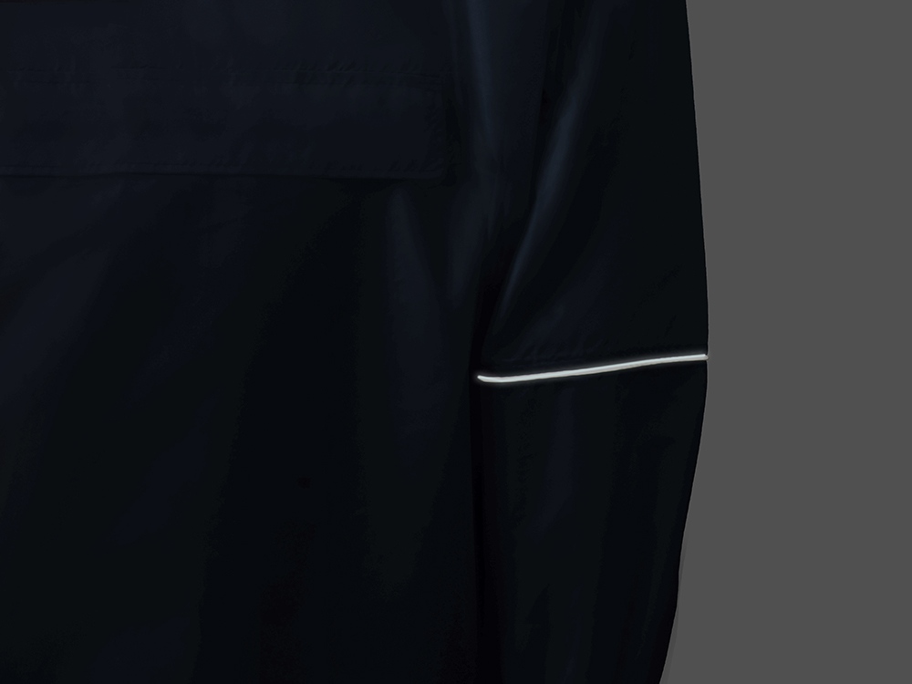 Швы капюшона и рукавов отделаны светоотражающим кантом, который делает человека заметным даже в темное время суток. Для комфортной посадки — затягивающийся на шнурок капюшон с фиксатором и манжеты на резинке.
