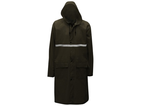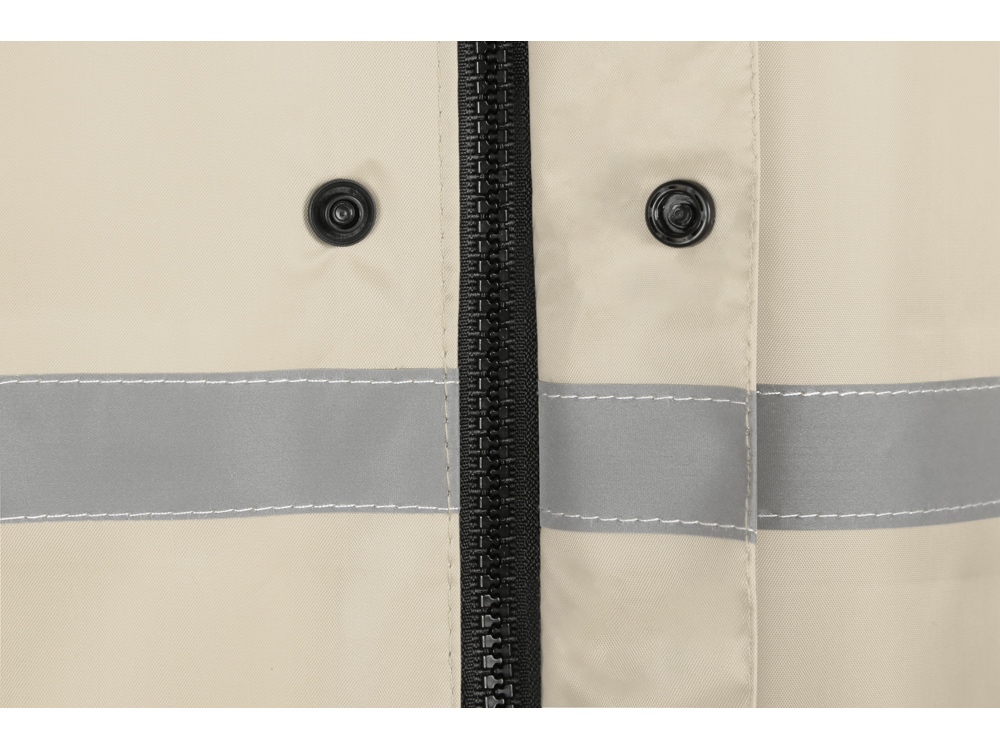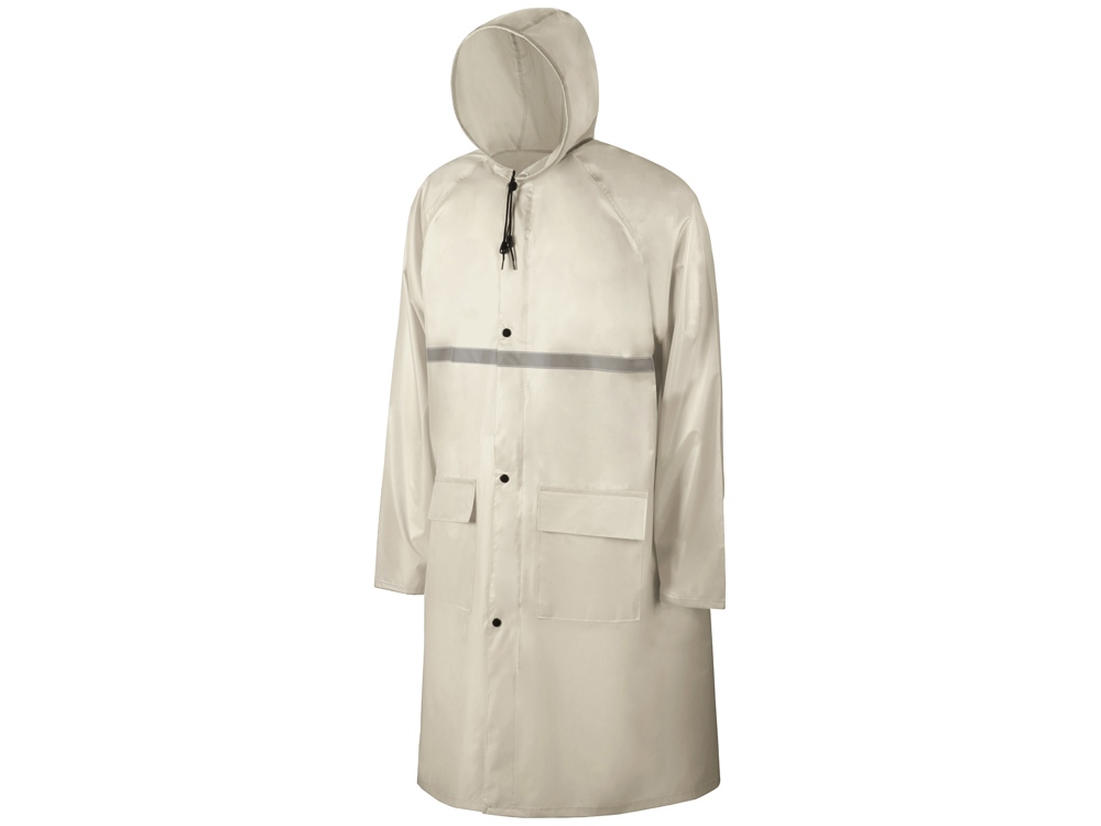 Светоотражающая тесьма на груди и спине делает человека в плаще заметным даже в темное время суток. Вместительные накладные карманы защищены сверху клапаном.