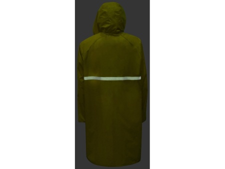 Светоотражающая тесьма на груди и спине делает человека в плаще заметным даже в темное время суток. Вместительные накладные карманы защищены сверху клапаном.