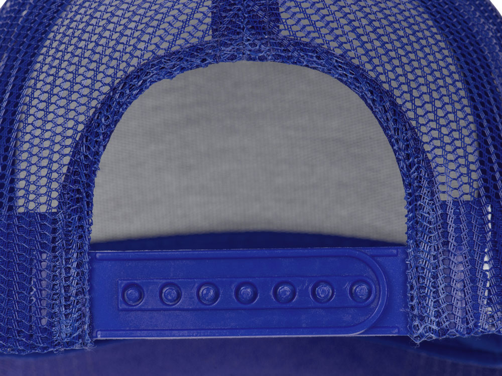 Пяти панельная бейсболка с передней частью из хлопка для комфорта головы и лба. Задняя часть из пластиковой сетки, которая отвечает за циркуляцию воздуха и обеспечивает изделию износостойкость. Для подгонки по размеру головы — пластиковая застежка.
