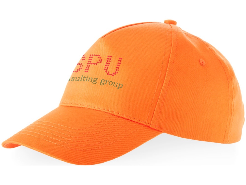 Отличная бейсболка из 5 панелей защитит от солнца. 5-ти панельная бейсболка выполнена из прочного хлопкового твила 230гр. Индивидуальный принт можно создать вышивкой либо при помощи термотрансфера.