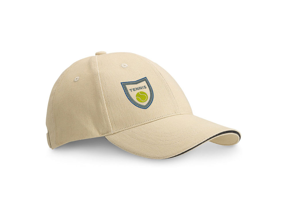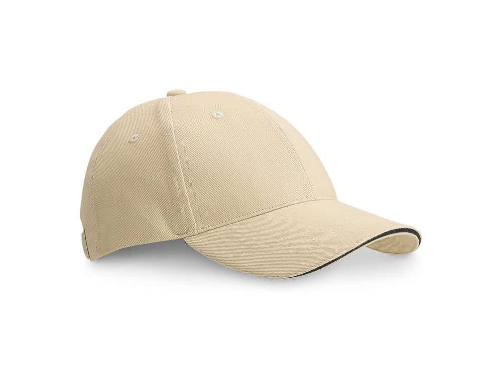 Бейсболка sandwich из 100% гладкого хлопка, с 6 панелями и вышитыми отверстиями для вентиляции. Регулируется металлической пряжкой. Размер: 580 мм