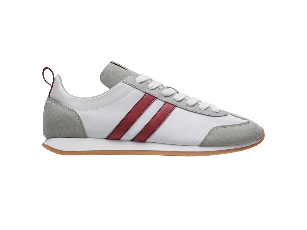 Повседневные кроссовки в стиле ретро с узким носком и резиновой подошвой. Фиксация на ноге с помощью шнурков, декоративные боковые полоски.