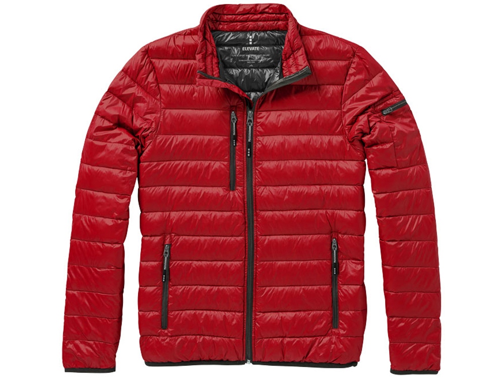 Легкая куртка- пуховик Scotia. Ткань не пропускает пух. Карманы для рук и нагрудный на молнии. Карман на рукаве на молнии можно использовать для нанесения. Резинка на манжетах и внизу куртки. Ремешки на собачку (второй комплект в цвете антрацит).Внутренний противоветровой клапан и защита подбородка. Ткань дышащая, ветронепроницаемая и влагоотталкивающая. Легкий пуховик. Ткань из 100% нейлона с матовым и блестящим водоотталкивающим покрытием, 20D. 90% пух и 10% перо. 115 г/м².