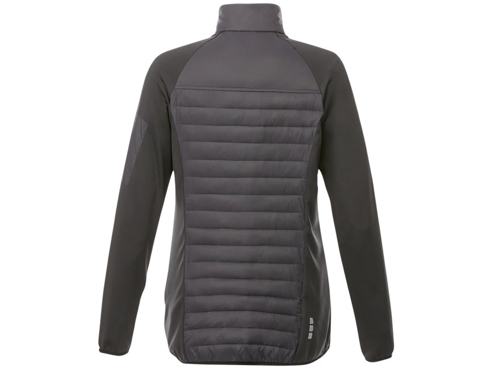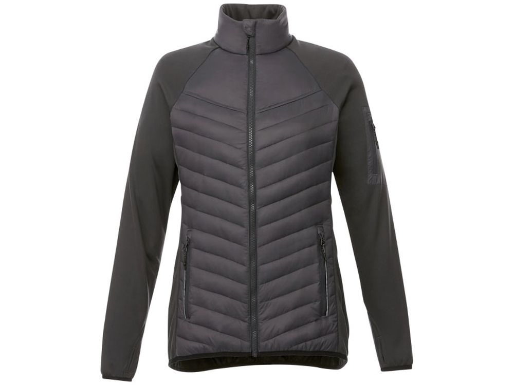 Женская утепленная куртка Banff. Внутренний противоветровой клапан и защита подбородка. Внутренний выход для медиапроводов. Удлиненная задняя часть изделия. Швы моделирующие фигуру и приталенный крой (женская модель).Манжеты-резинки контрастного цвета. Отделка контрастной тканью. Молния с контрастной лентой. Молния легкого скольжения. Петелька-вешалка. Комфортный ярлык-трансфер на изделии. 100% нейлоновая тканая матовая отделка 380T, водоотталкивающая и пухонепроницаемая ткань. Контрастная ткань: 94% полиэстер, 6% эластан с водоотталкивающей поверхностью. 38 г/м².